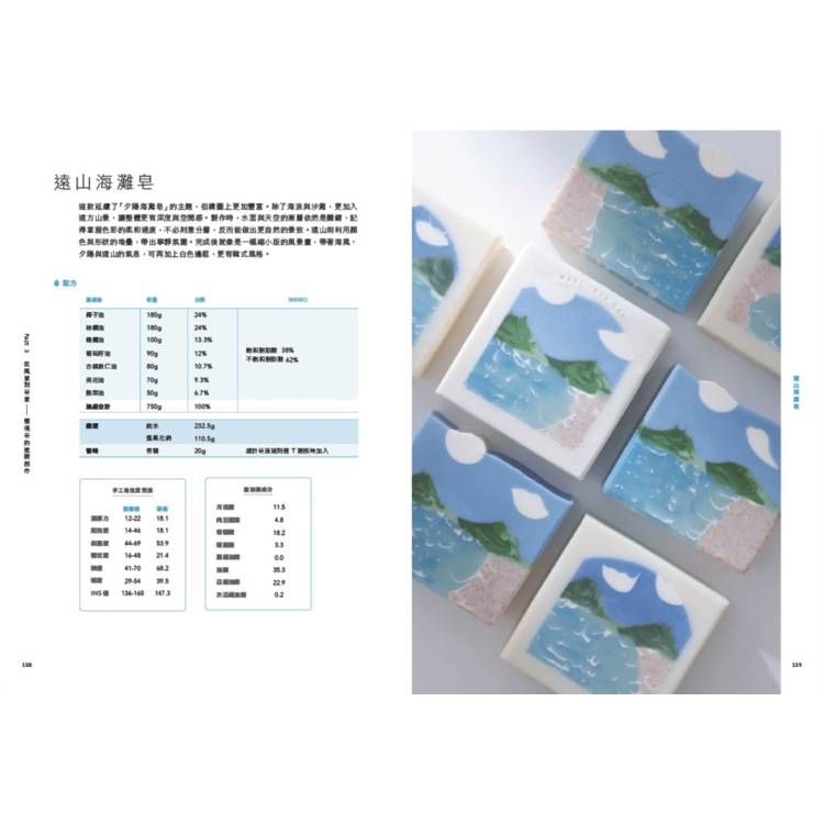 本書從冷製皂的基礎開始,循序引導讀者認識油脂特性、鹼與水量的關係,以及配方計算的核心邏輯,建立穩定、可控的製皂流程;再進一步學習掌握皂液濃度、色彩調製、香氛搭配與構圖順序,將畫面層次與風景細節一步步「放進」肥皂裡。