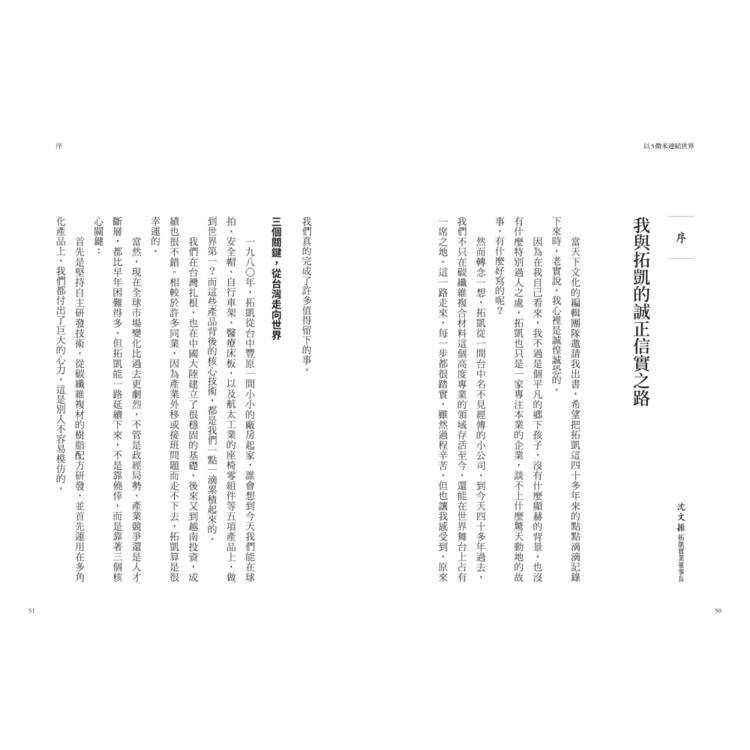 這本書,不只是拓凱的歷史,更是台灣的故事,是一位慈濟志工的心路歷程,是一位企業家的社會責任實踐。
