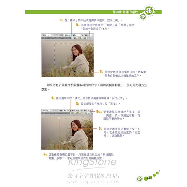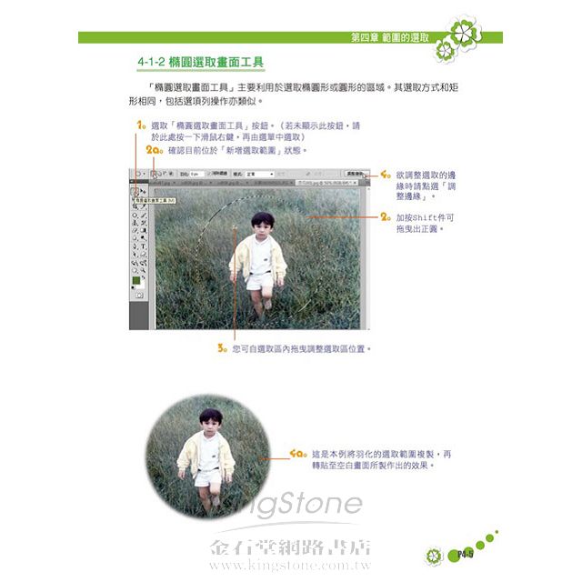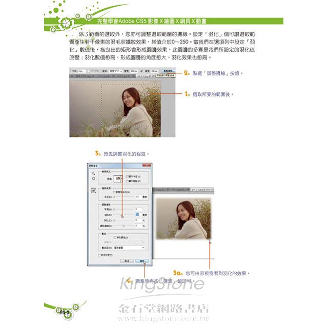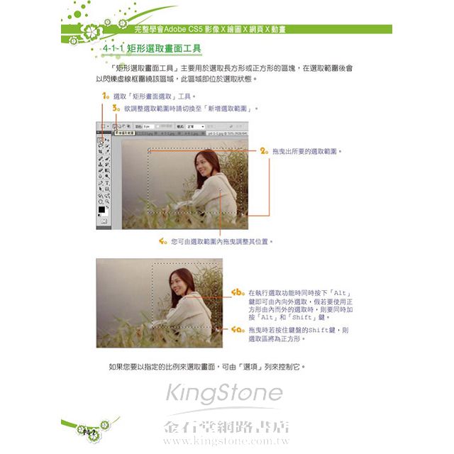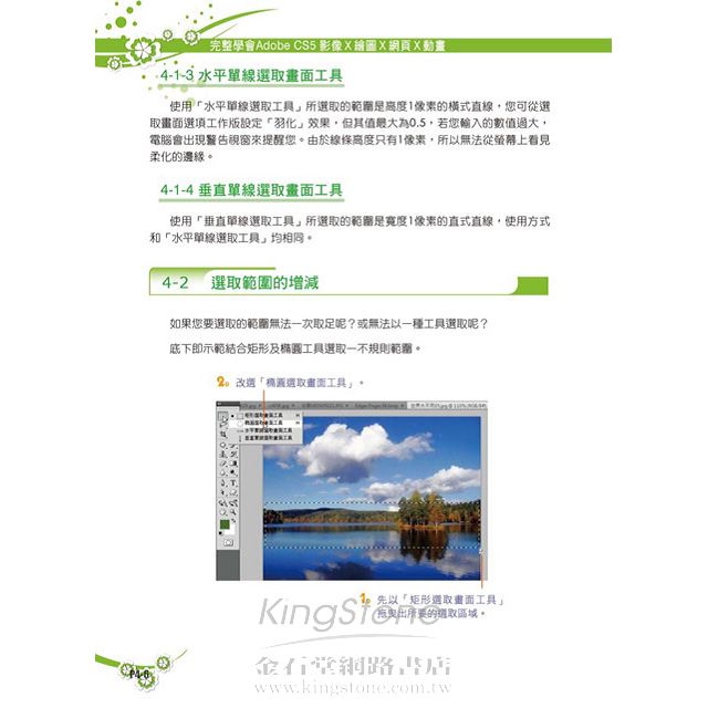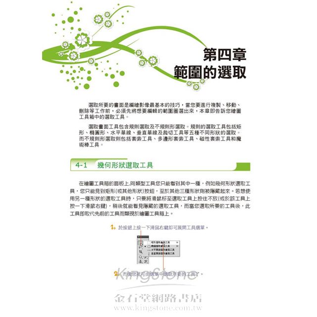 在影像的處理上,本書對於各種選取影像技巧、編修工具、濾鏡特效...等都有詳盡的介紹。