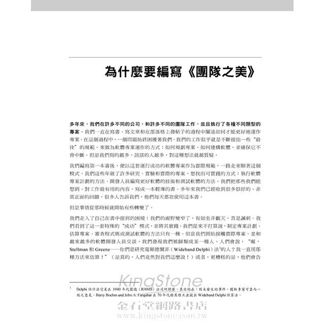 本書帶領你到幕後看看那些在軟體工程史上最引人注目的團隊。經由傑出的程式設計師,架構師,專案經理和思想先驅者等一系列引人入勝的故事和訪問,您將從資深團隊領導者的成功和失敗中學到經驗。
