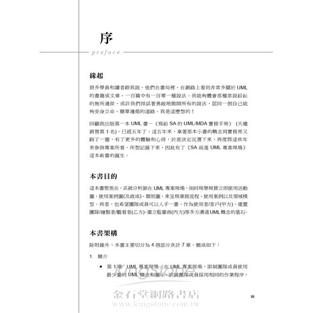 同樣地,在UML專案現場,保持簡單使用UML也是一項值得讚許的美德。或許,我們真要借用坎普拉的話來提醒自己:只有平庸的團隊,才會把UML用得既複雜又困難。