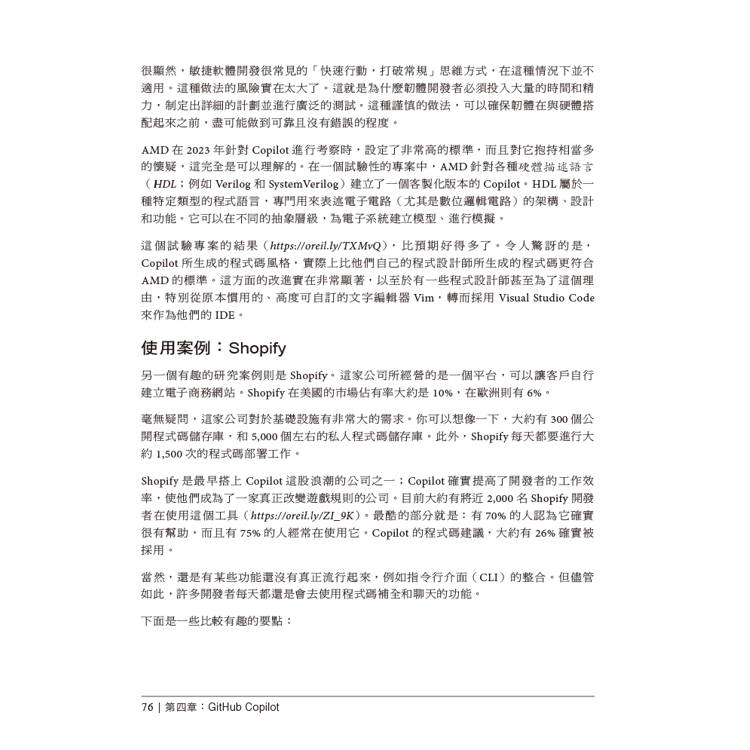 「我們在六個星期內,就把向量搜尋的功能順利加入Cassandra,其中Copilot和ChatGPT絕對是我們能在期限內完成任務的重要關鍵;不過,大多數開發者卻不知道該如何善用這類AI工具。Tom這本書就是很棒的入門方式,可以讓你省下無數嘗試錯誤的寶貴時間。」