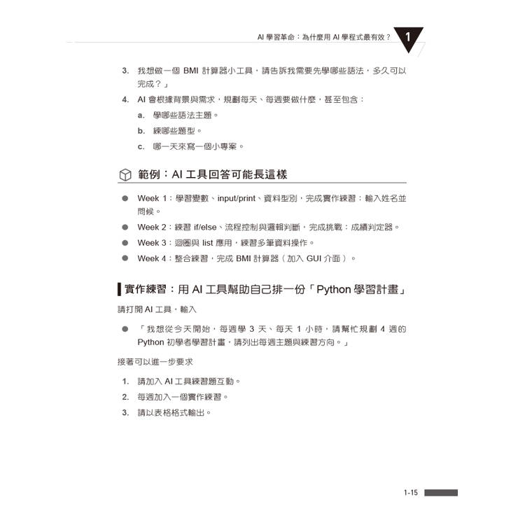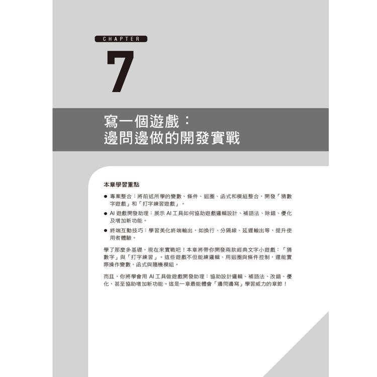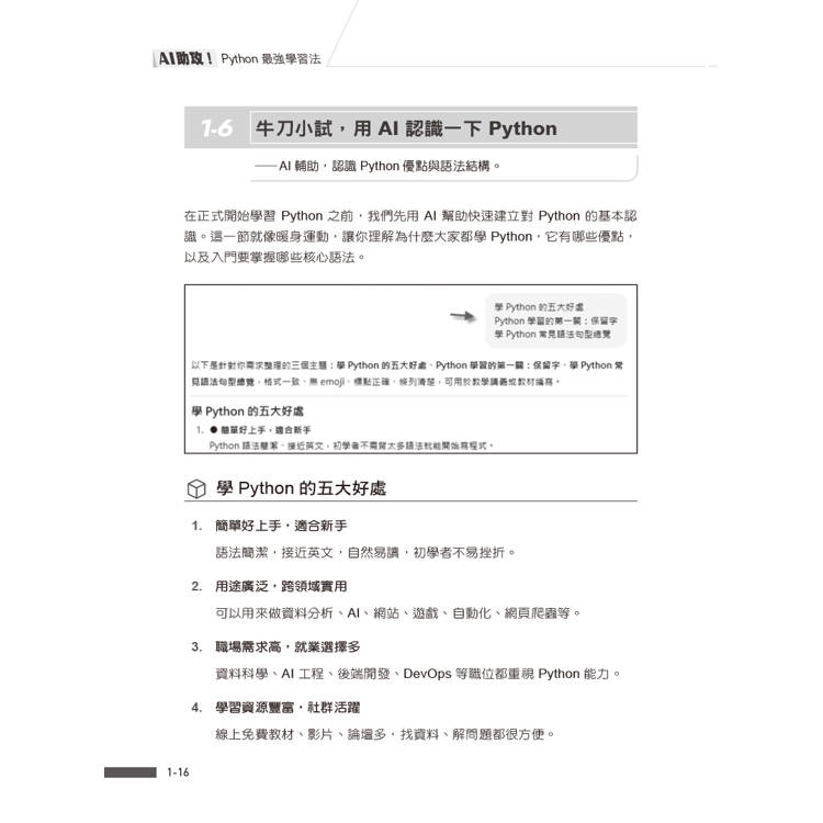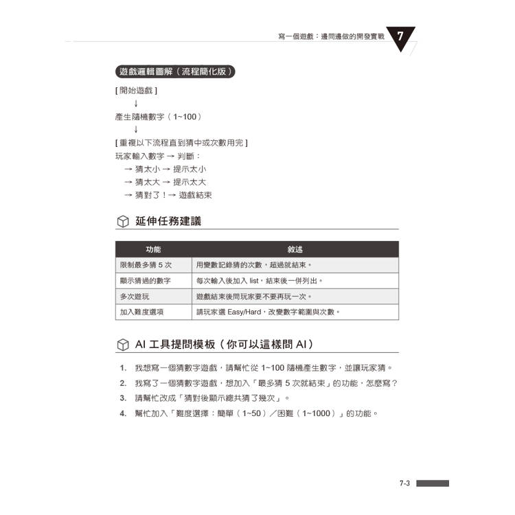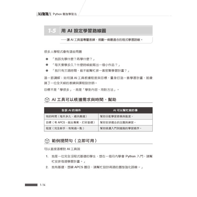 ● 模板庫就能上手:建立自己的提示句模板、最小可測試案例範本、除錯檢核清單、作業規格樣板。