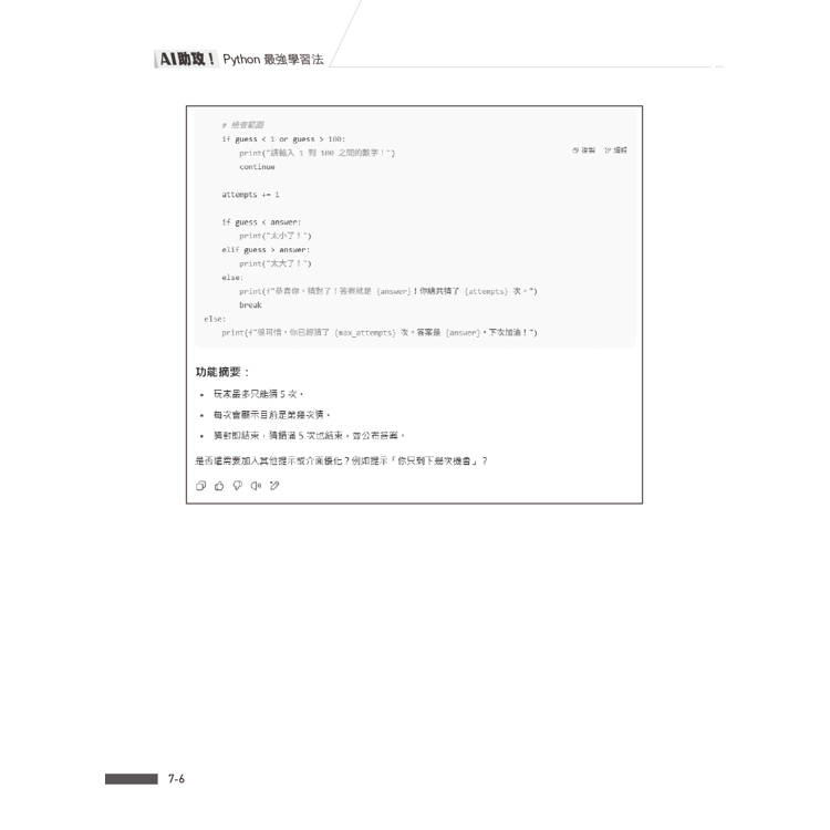 ● 308次AI實戰提問練功:從需求出發、撰寫提示、測試程式、錯誤修正到模板建立。
