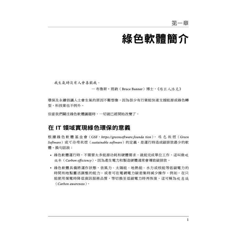 內容簡介:面對氣候變遷,在尋找解決方案的過程中,軟體專業人士能發揮哪些作用可能讓人感到難以捉摸。這本書是一份極佳的指南,專注於我們可以採取的實際步驟,並使我們的系統更加永續。