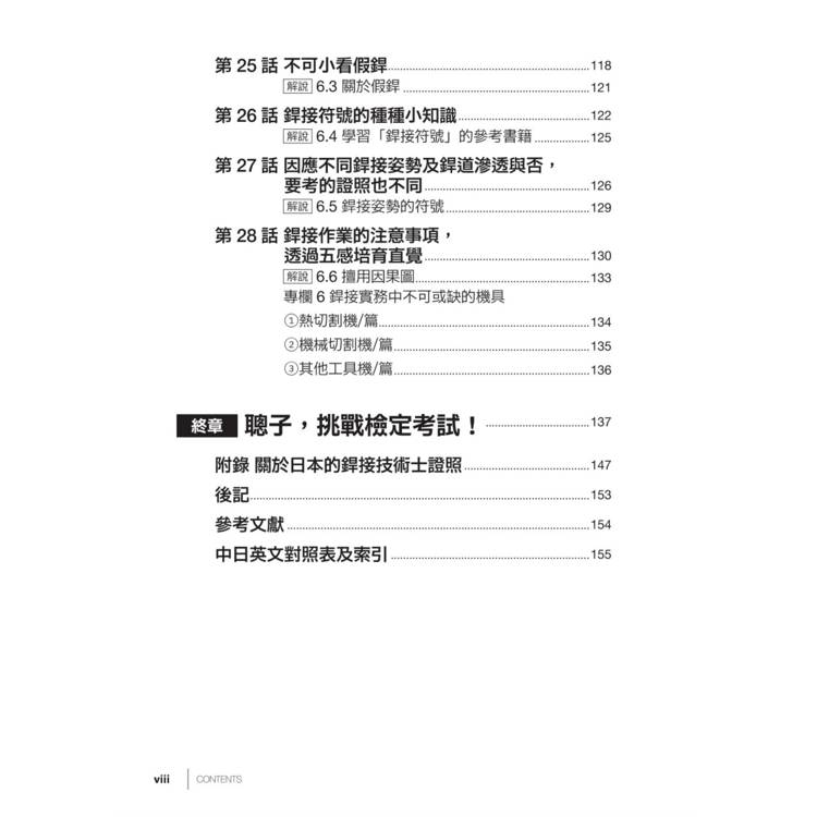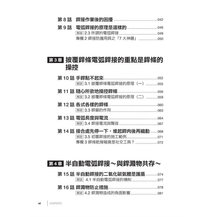 ‧第6章實務技巧 假銲、銲接缺陷與銲接不全、銲接符號、不同銲接姿勢及銲道滲透與否‧要考的證照也不同