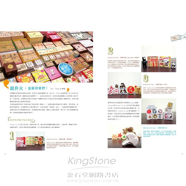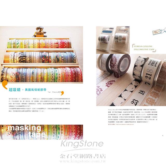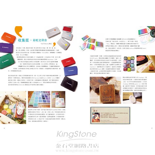 而除了手創作品外,書中更邀集了多位知名文具部落客,專文撰寫了關於紙膠帶、印章、印台、便利貼、手帳拼貼等精闢又升火的文章,這一切都是希望《文具手帖》能滿足所有愛文具也愛手作讀者們的喜好。
