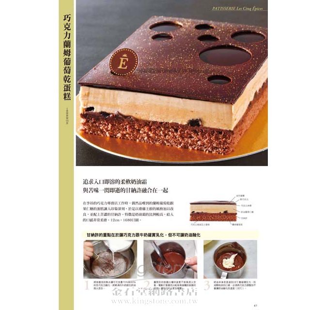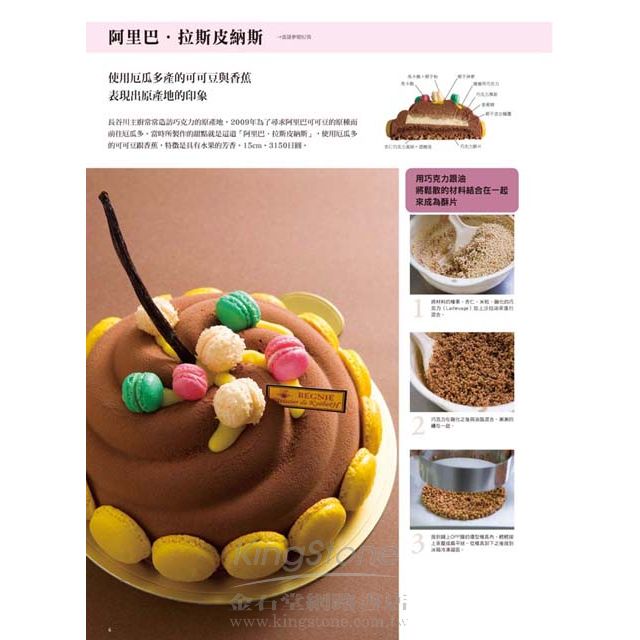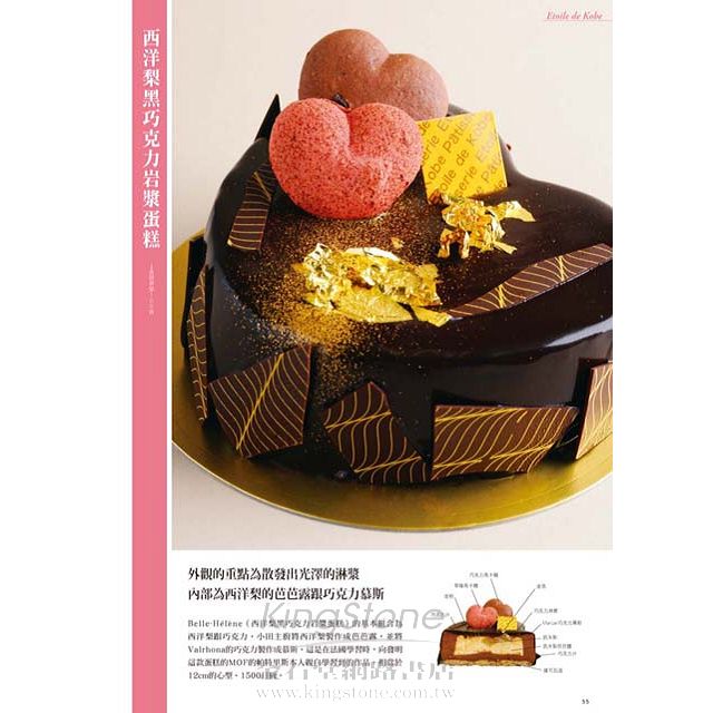 本書所介紹的全部甜點皆有彩色作法流程、完成品斷面圖,並且清楚標示使用材料與份量,就連使用的甜醬調製法以及擺放在糕點上面的美麗裝飾都不私藏的全公布!