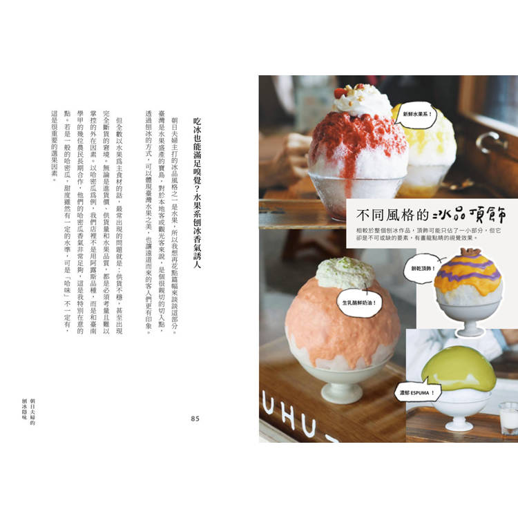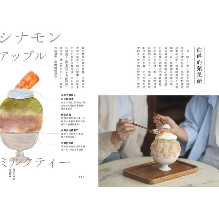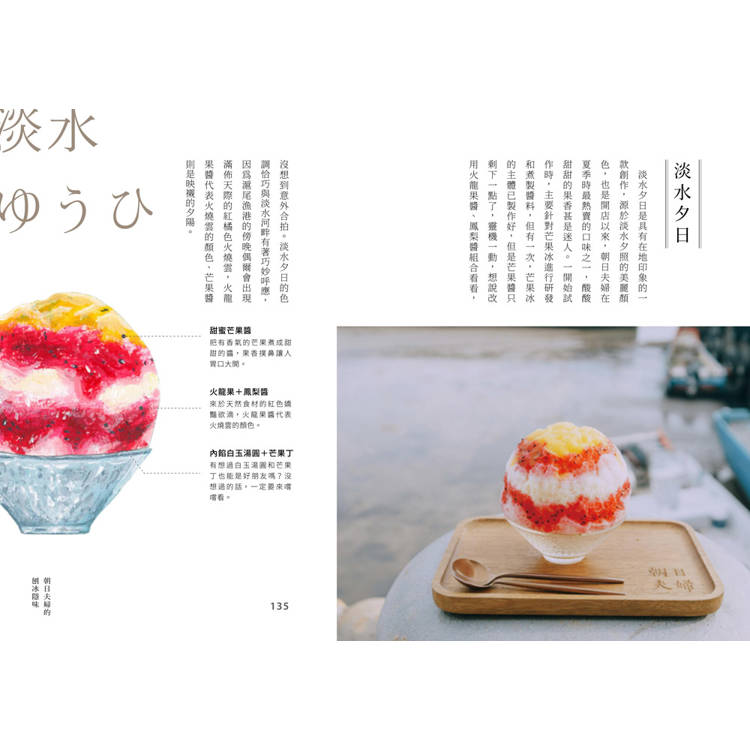 抹茶ESPUMA、淡水夕日、藍莓優格、芒果優格、伯爵的蘋果派、酪梨牛奶、糖漬白桃、萬聖節南瓜……這些品項的照片不斷被來吃過冰的網友們分享轉傳。書中把這些讓人難忘的舌尖滋味化為可愛圖鑑,一次視吃讓人大滿足,歡迎直接來店品嚐唷~