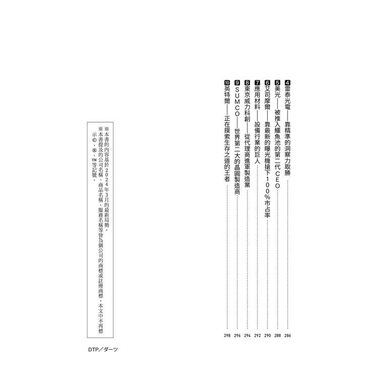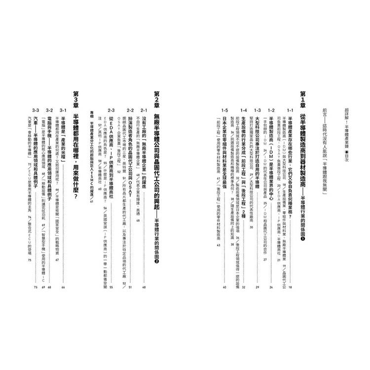 因此,只要你從頭讀完本書,就能加深對整個半導體產業的理解;而若你出於個人興趣或為了獲取相關行業的知識而閱讀本書,也可以只適當地選讀你需要的章節和項目,相信如此便足以充分達成你的目標。