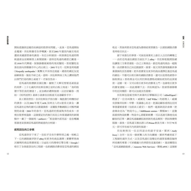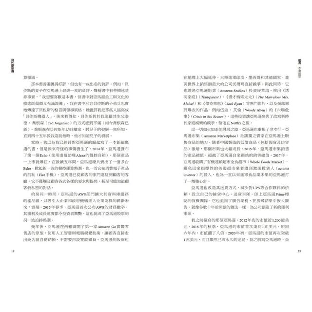本書以詳盡、深入幕後的資訊,及時地為我們講述當代這個重要而精采的企業故事,帶領讀者完整了解貝佐斯和現代人已經離不開的亞馬遜帝國。