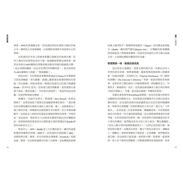 在本書中,史東深入而生動地描繪一家零售新創事業如何演化為一個叱吒全球經濟、呼風喚雨的企業集團。史東採訪亞馬遜現任及離職的經理人和員工,也訪問主管機關和批評者,從各個角度呈現亞馬遜在過去十年間的發展裡,內部巨變如何促成驚人的創新,一些失策如何引發大眾、合作伙伴的反感,以及後來尋找第二總部時遭遇的波折。