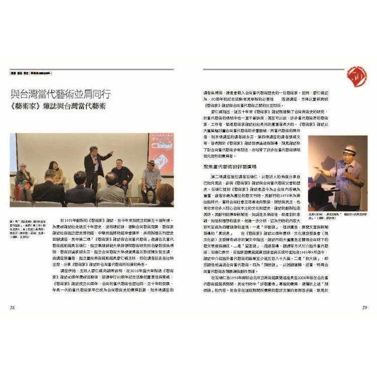 最讓我們感到驕傲的是,台灣的藝術雜誌都是民間力量的開花結果,聚集著藝術寫作者,討論國際藝術潮流,評析藝術家與藝術作品,即使電子媒體日益強勢,它們也都能堅挺著旗幟,維護這個從啟蒙運動延續下來的文化價值。