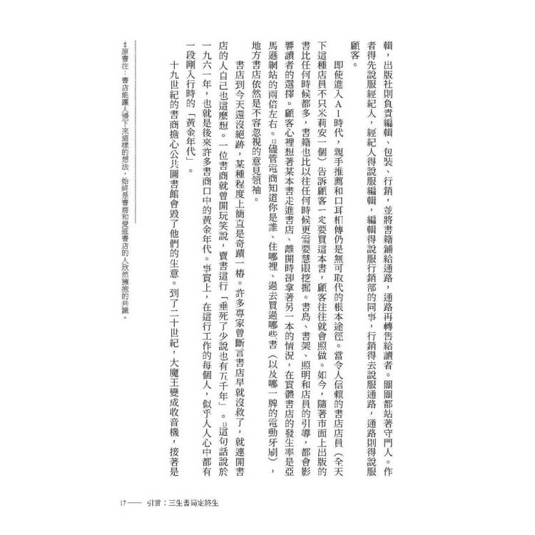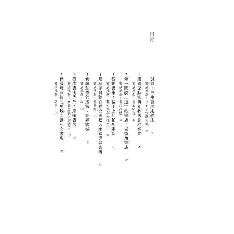「讀來宛如置身最愛的書店之中⋯⋯沿途遇見諸多奇聞趣事⋯⋯佛里斯彷彿歷史版的印象派畫家喬治‧修拉,將這些精彩細節與軼事精心拼貼,讓點滴史實匯聚成美國書店業及其式微的完整畫作。」