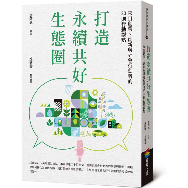 這本書收錄芙彤園Blueseeds創辦人詹茹惠與20位跨界行動者的深度對談,從地方創生、循環經濟、公益文創到影響力投資,呈現永續如何在不同領域落地。受訪者包含政府官員、企業領導者、創業家、投資人與文化工作者,他們分享看見問題的角度,也分享親自下場時的挫折、突破與方法。讀者會在這些真實故事裡,能看見永續是由人、土地與選擇交織出的日常實踐。