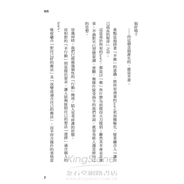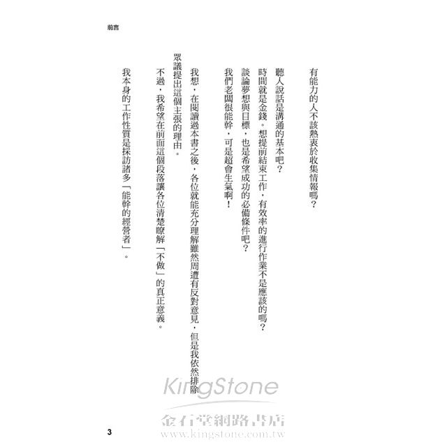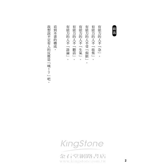 如果你總是被時間追著跑、容易受他人意見左右、會立刻感覺焦躁的話,請試著透過本書,檢視一直以來的「行動」,學著「不要做」,成為一個真正「有能力的人」。