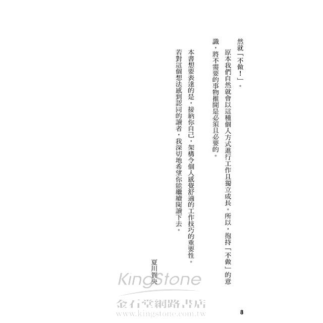 想讓工作更上手,不是讀一大堆成功者的書依樣行動,而是應該好好思考,找出「最適合自己」的方式。至於那些不適合的事情,當然就「不做!」
