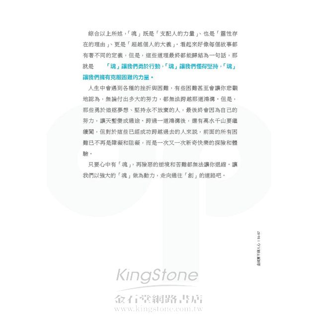 我們都喜歡直覺性強的書名,就是那種一看到書名就明白書的內容是什麼。若從書封上斗大的三個字──魂.創.通來看,似乎有些虛無飄渺。發揮想像力,何謂『魂』?感覺是日本人很愛用的字,就是要堅定自己信念。何謂『創』?感覺就是要創新、具備創造力。何謂『通』,應該是說待人處事要溝通吧?