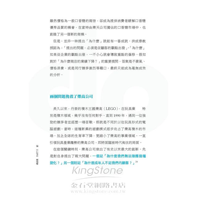 為什麼台灣本土炸雞店無法像美式炸雞店一樣基業長青?為什麼有些公司在品牌經營上容易失焦,卻也有公司的品牌給予人高度的辨識度?很多關於企業經營以及個人職涯經營的重點,都可以一一在這本書中學習到。從書名來觀察雖然不太容易懂,但書中所列舉的經營典範卻都是有目共睹的,期待也能為你帶來不一樣的新思維。(文/悅知文化編輯蕭書瑜)