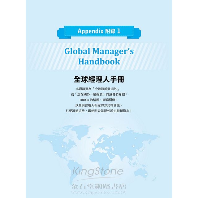 ★ 附錄全球經理人手冊,出差外派前有效掌握新興市場資訊!