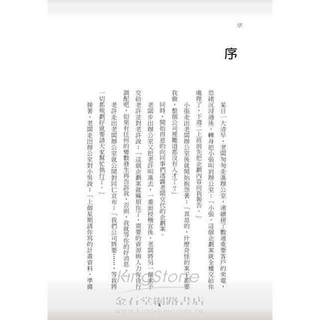 某日一大清早,老闆匆匆走進辦公室,連續接了數通重要客戶的來電,思緒沉浸過後,轉身把小張叫到辦公室:「小張,這個企劃案就全權交給你處理了,下週二上班前先把企劃內容向我報告。」