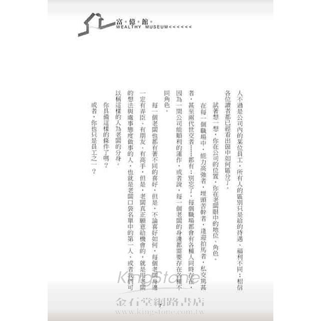 每一個老闆也都有著不同的喜好,但是,不論喜好如何,每個老闆身邊一定有弄臣、有朋友、有高手,但是,老闆真正願意給機會的,就是用老闆的想法與處事態度做事的人,也就是老闆口袋名單中的第一人,或者我們可以稱這樣的人為老闆的分身。