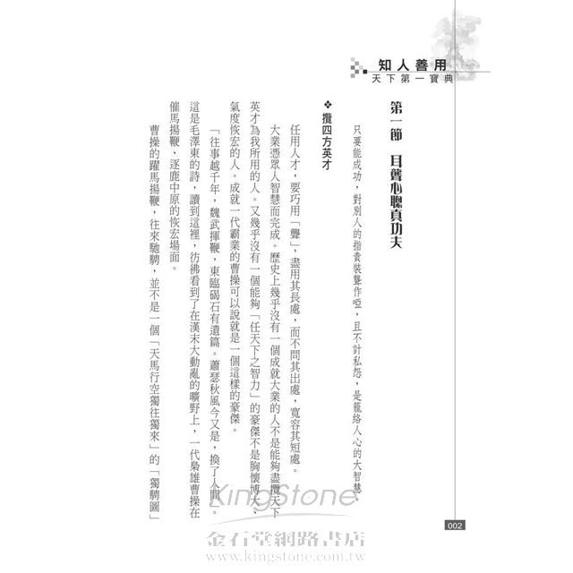 知人善用、用人唯才,方可在波譎雲詭、經濟蕭條、百業待舉的商戰叢林,腳踩一席地、頭頂一片天。