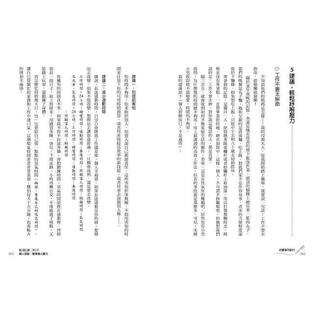 .2:管理個人壓力:來自工作和家庭的壓力常讓你喘不過氣?想要高人一等,就是要平衡兩者壓力。作者教你,善用自己專屬的「氧氣時間」,平衡自己、負面情緒轉正、增加幸福感。