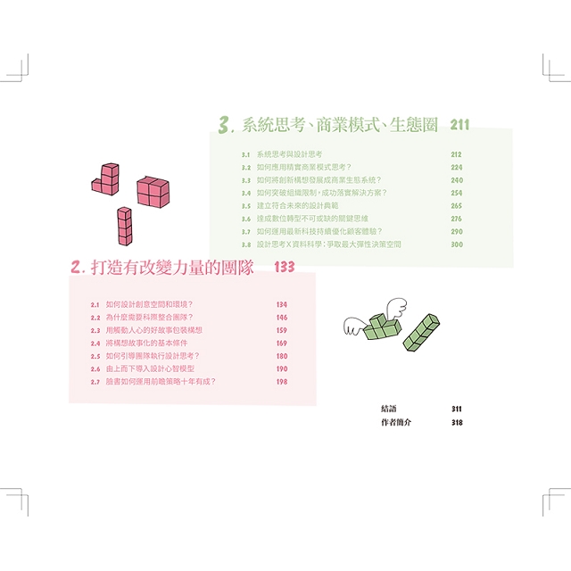 本書透過大量的實作歷程與表格工具,解釋設計思考的不同階段,描述如何改造組織讓設計思考可以扎根於公司的環境之中,最後透過商業生態系統思維,協助我們運用設計思考,面向未來數位世界與人工智能的挑戰。