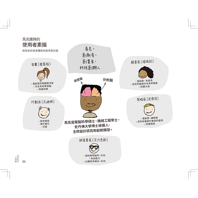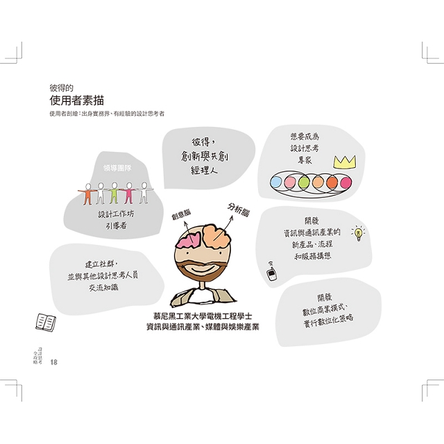 透過書裡的三個模型人物(Persona):彼得、莉莉和馬克,更懂得如何以人為本探尋對象真實的需求而非從產品特色出發;