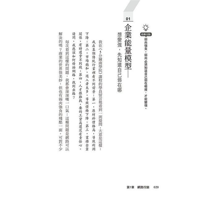 3. 每節商業專有名詞,皆有由深入淺的引導,提供使用本書的人自行操作深入延伸式的思考過程與紀錄。