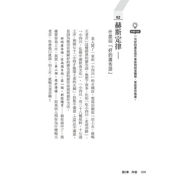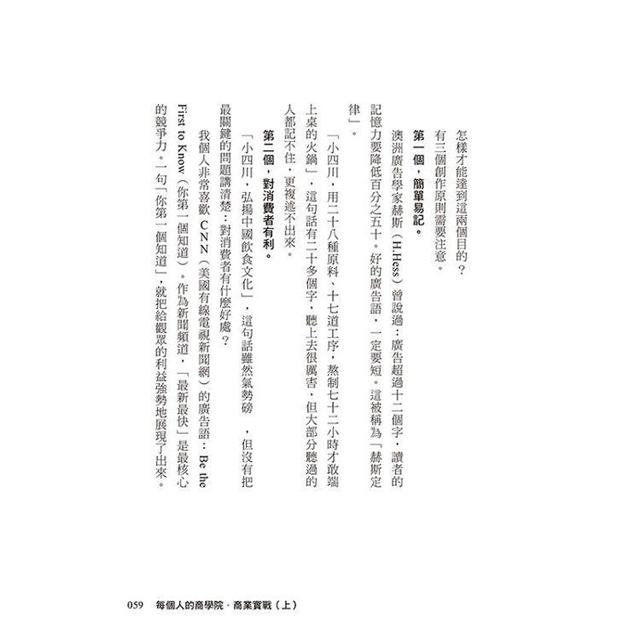 2. 作者敘述口吻平易近人,將枯燥的商業理論,藉由說故事的方式,字字珠璣、簡明扼要,每篇幅閱讀都輕鬆無負擔,幾分鐘內即可融會貫通。