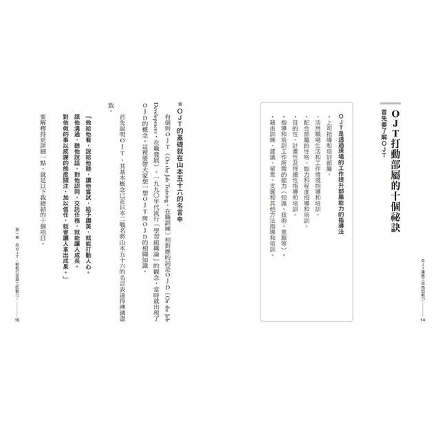 另外,這本書當中還會添加OJD(在職發展,參照開卷跨頁)的介紹,號稱新OJT。