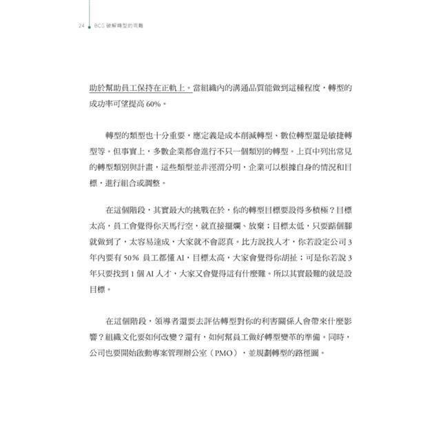 讀這本書時,開始需要點耐心,因為每個當事人描述的情況,看似跟自己的經驗無關,但很快,你就會發現,「啊!他碰到的問題我也正在遭遇」,再讀到JT的追問時,「哇!原來還要把這個想清楚」的OS又會浮現。其實,他提醒的底層問題,我們不是沒碰觸過,只是太少正視,而偏偏,這又是BCG全球顧問看過大量個案後,累積出的成敗關鍵。