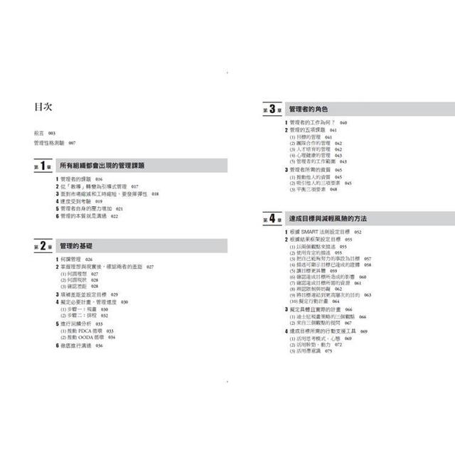 (1)目標管理的管理(2)團隊合作的管理(3)人才培育的管理(4)心理健康的管理(5)經理人的工作範圍
