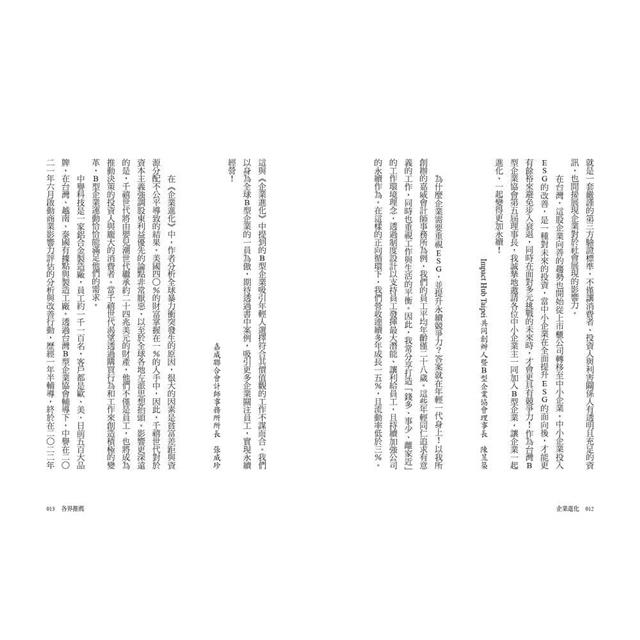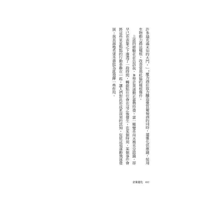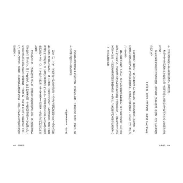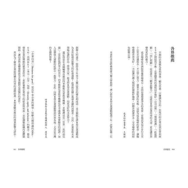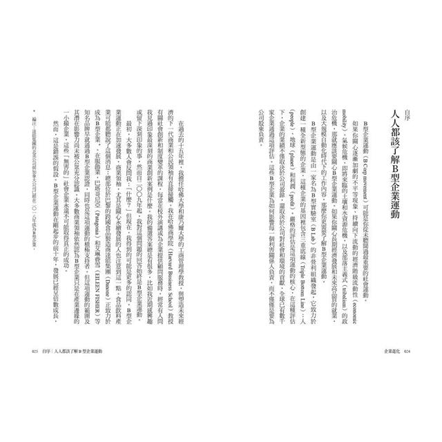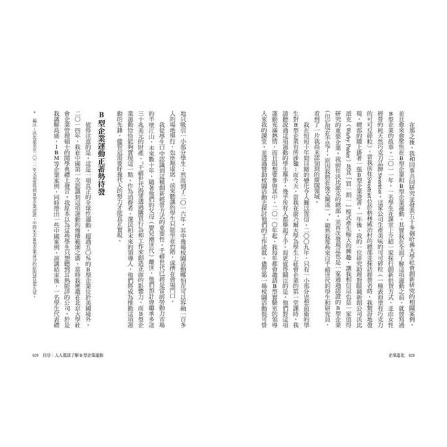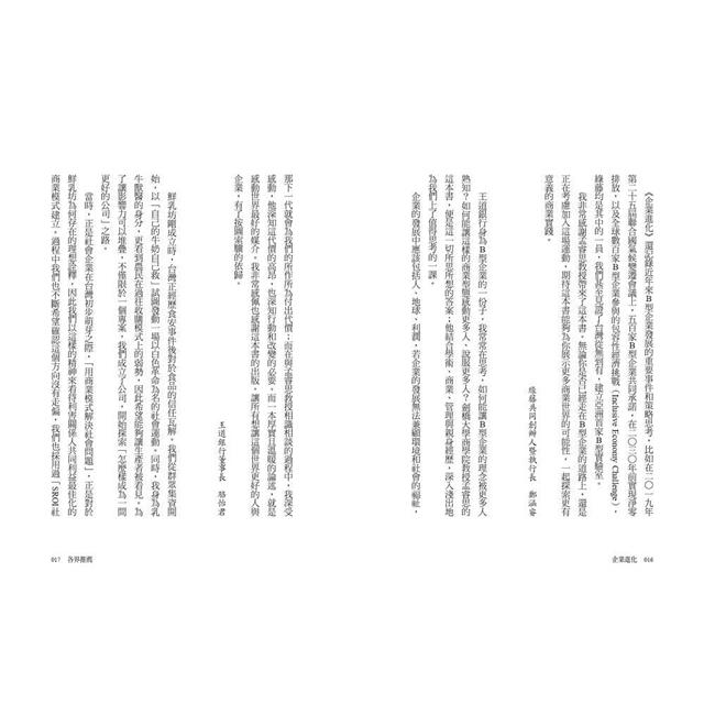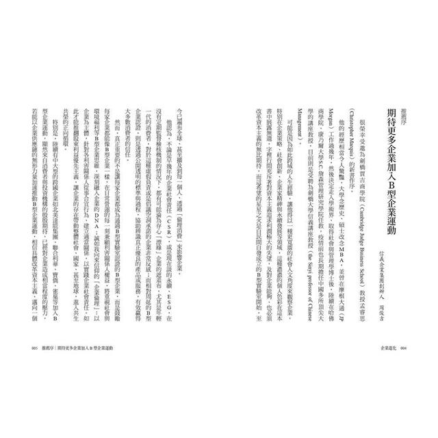 我非常感謝孟睿思教授帶來了這本書。無論你是否已經走在B型企業的道路上,還是正在考慮加入這場運動,期待這本書能夠為你展示更多商業世界的可能性,一起探索更有意義的商業實踐。