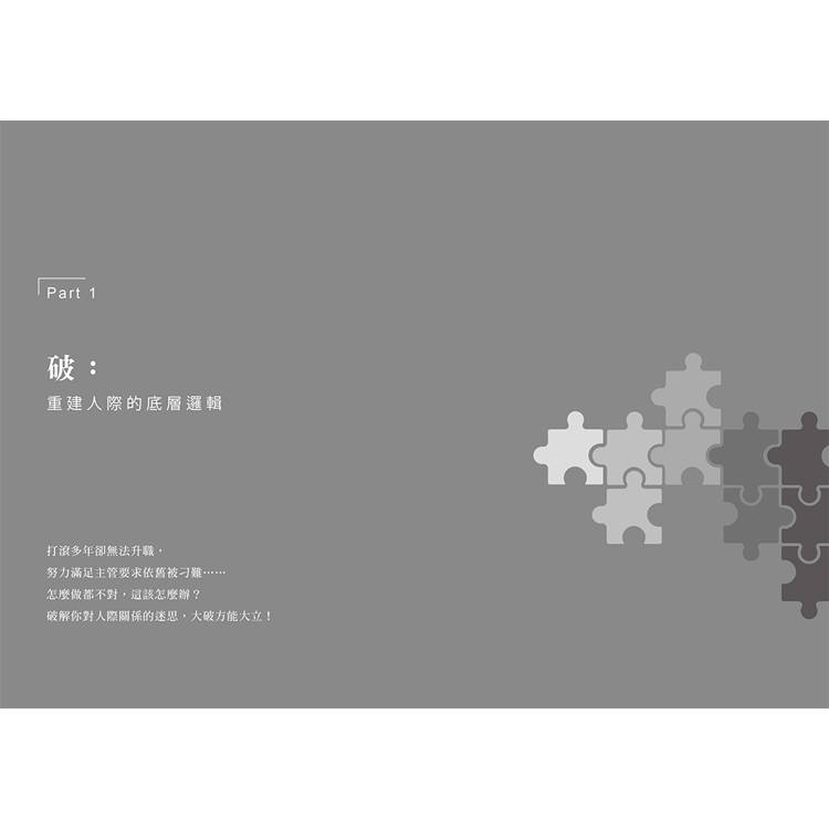 做人也好,做事也罷,我希望這本書真正的意義不光是讓你加薪、升官,而是讓你在職場這個遊戲中,更能好好地體驗人生、享受工作。常聽到年輕人忿忿不平地說,上班不過是為了賺錢,其他的一切都是假的。我只能說,有這樣的想法真的是可惜了,在職場裡一樣可以享受成就感、享受人際交流的樂趣,只要你能掌握遊戲規則,「上班」這件占據人生三分之一時光的活動,也能為你帶來精采豐富的體驗。