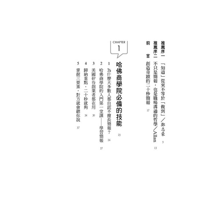 現在,翻開本書,向作者學習20秒簡報的溝通哲學吧!
