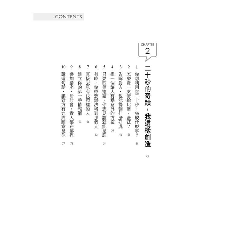 本書收錄大量的實際案例,讓讀者可以更有臨場感的去感受、理解簡報的威力。我集結了將近10年的研究結果,並凝聚精華成就了這本書,衷心盼望你也能自由自在的使用,親自感受所謂20秒的奇蹟!