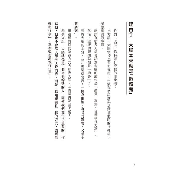 本書帶你了解「大腦為什麼會這樣」的機制與運作,只要開始練習「啟動多巴胺3步驟」,透過反覆循環,就可以把「多巴胺控制」變成一種習慣。善用它的回饋力量,就能讓設定的目標在「開始行動」之後,隨著時間推移動力漸增,最終輕鬆達成。