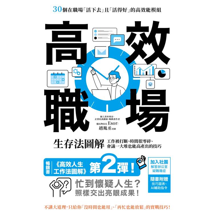 本書的主軸不是「效率哲學」,而是「生存術」。也就是說,目標不是變成年薪千萬、人生巔峰(如果想往目標前進,歡迎參考我們的第一本書《高效人生工作法圖解》),而是:###在一個每天都被打亂的工作環境裡,我怎麼還能穩穩交付成果,不被炸掉!###