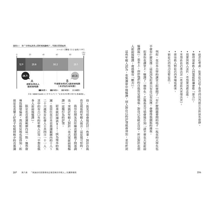 本書的第二部分裡,描繪了非常多現今年輕人的模樣。在此,我想要提高各位讀者平日在工作場合中遇到的那些,狀似不可理解的年輕人行動的可辨識度。