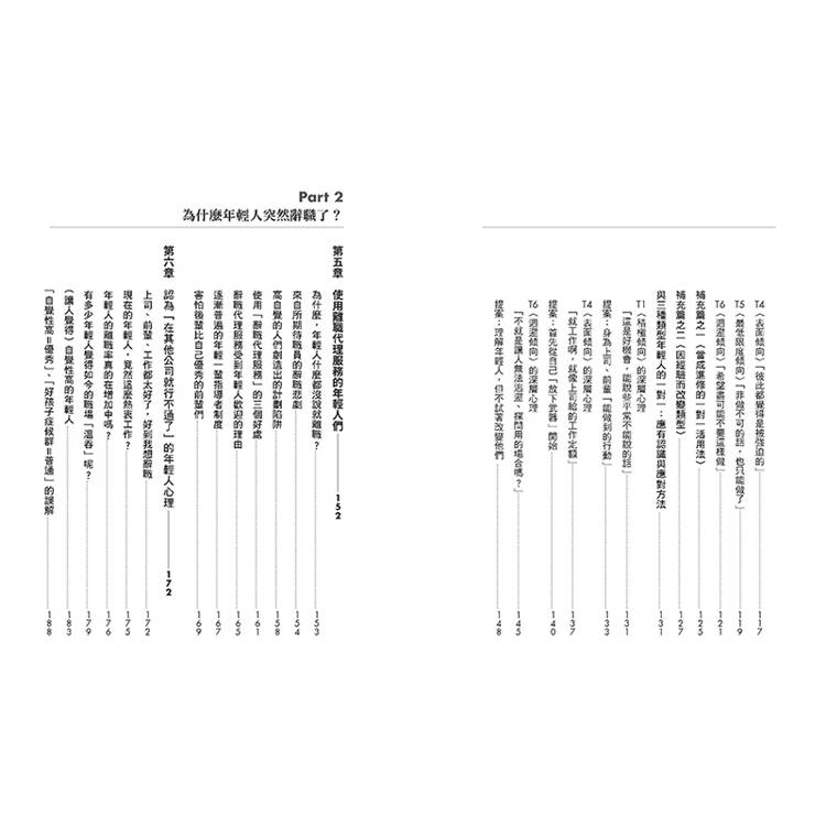 例如在第五章中,就會談到「上週都還很正常地談著之後的工作,卻什麼都沒講就辭職了的年輕職員」。