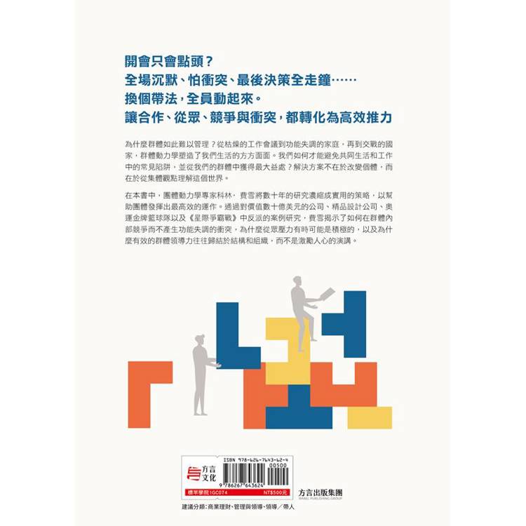 在本書中,作者將帶領我們看清這些規律:「人類天生渴望歸屬,因此容易產生從眾與沉默;群體本能的分類,也讓競爭既能激發動力,又可能引發衝突。若忽視這些現象,領導者就會錯把團體問題歸咎於個人,陷入「換人卻不換方法」的死循環。本書提供的是一副新的透視鏡,讓管理者看清團隊背後的心理機制,重新掌握解決問題的起點。