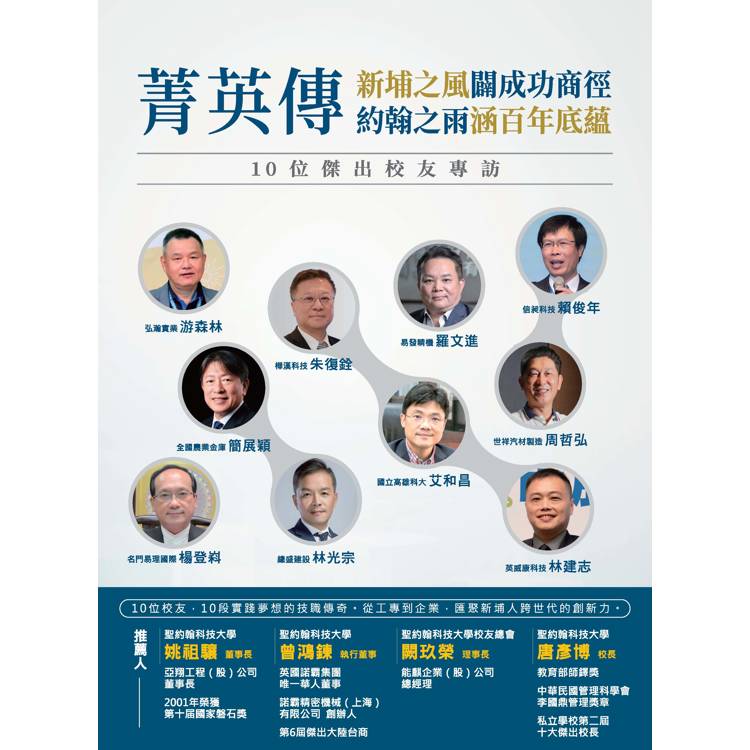 他們來自台灣技職教育的搖籃:新埔工專。從驗室、實習工廠到國際舞台,他們用雙手驗證理論,用實作定義價值。本書深入十位傑出校友的經營現場與生命故事,看他們如何將「工專精神」轉化為破框前行的實戰力: