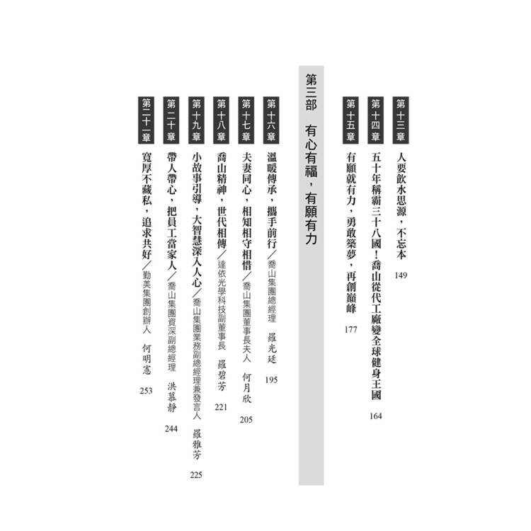 喬山從台灣出發,走向世界;從製造走向品牌,從代工邁向創新。本書記錄的,不僅是成功企業的發展,更是關於信念、毅力與遠見的故事,是一套值得世代傳承的價值體系。