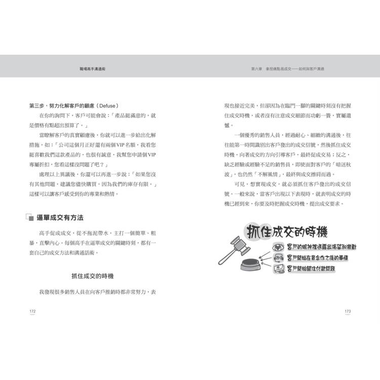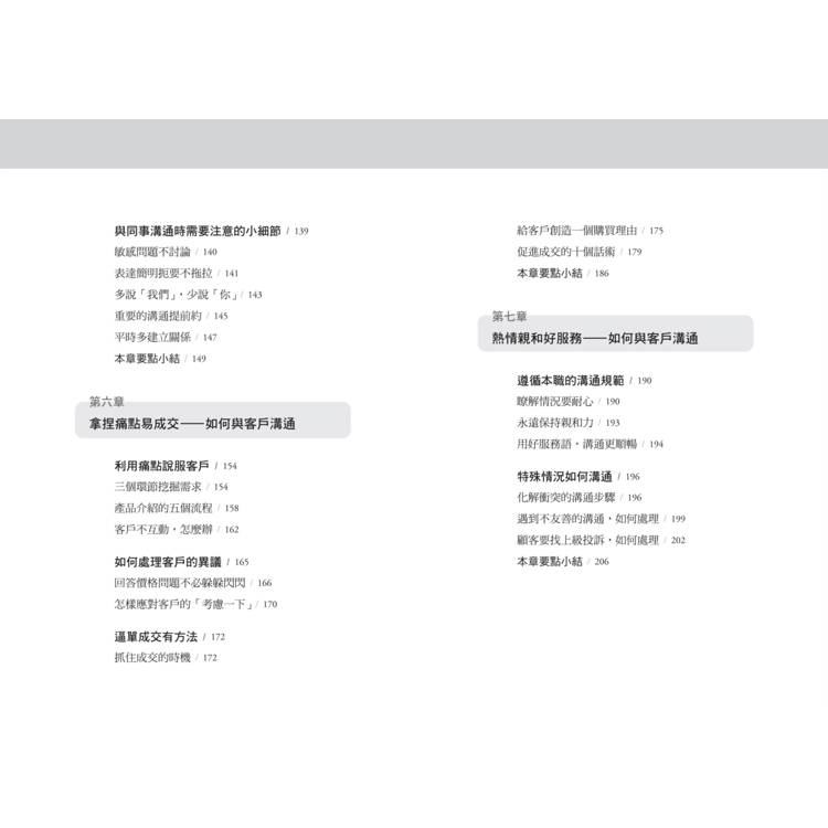 章節結構清晰,每章皆有重點摘要與話術整理,實用性強、查找方便,