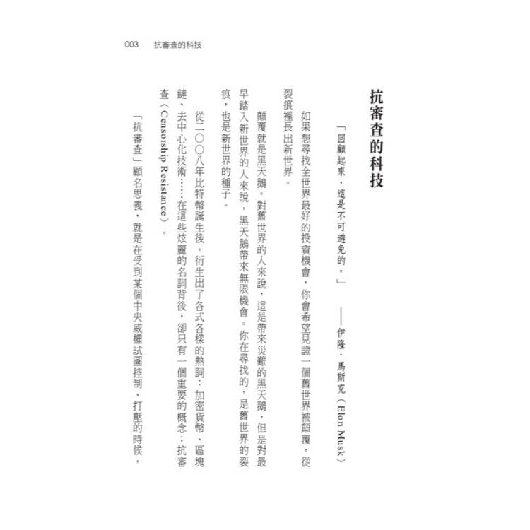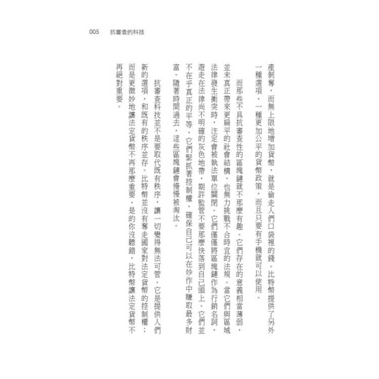 從比特幣誕生到區塊鏈革命,本書以「抗審查科技」為核心,帶領讀者重新理解金錢、法規與信任的未來。