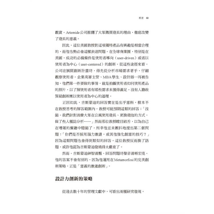 個人認為,本書最創新之處,在於「設計力創新」的觀念,開創了設計創新管理領域一個全新的視野,也讓設計回歸到該字原本賦予事物意義的角色。