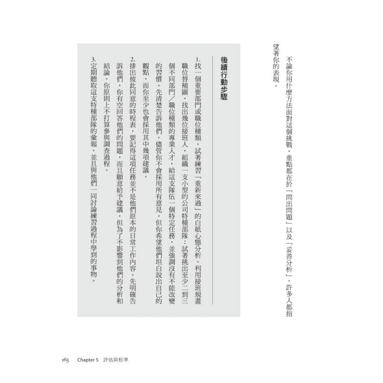 這個不屬於正文的章節,反而是作者想要帶給讀者的彩蛋。而我深深覺得,能把「問對問題」與「後續建議步驟」寫得如此完整有序,真的很不簡單。